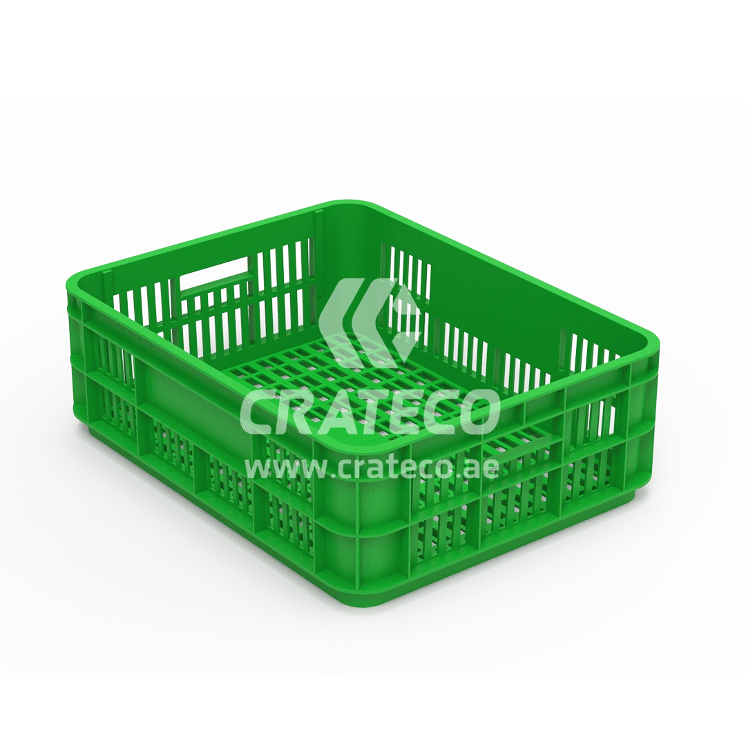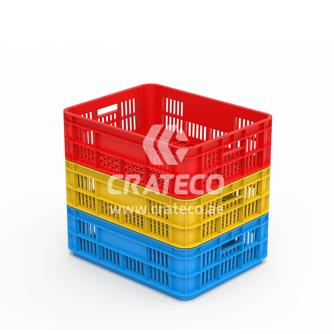 Crateco stands as the leading plastic crates manufacturer in UAE. Our bakery crate features a low height, facilitating easy handling and convenient access to its contents. Apart from bakery crates, we also provide fruit and vegetable crate, used for an efficient supply chain of fruits and vegetables, ensuring their quality and freshness are maintained from the farm to the market. Crateco, a reputable plastic crates supplier in UAE, provides quality crates to meet various storage and transportation needs.