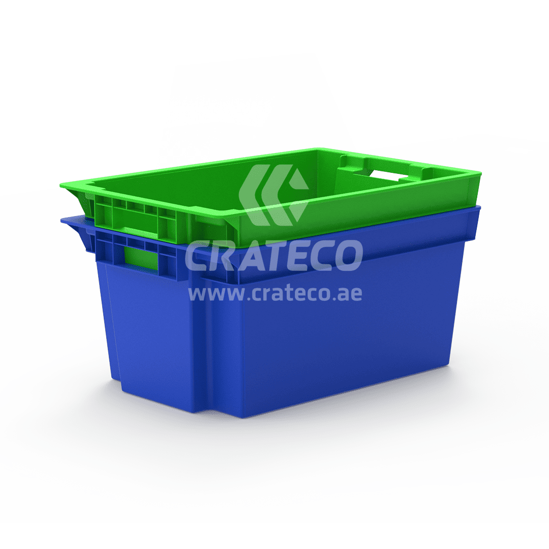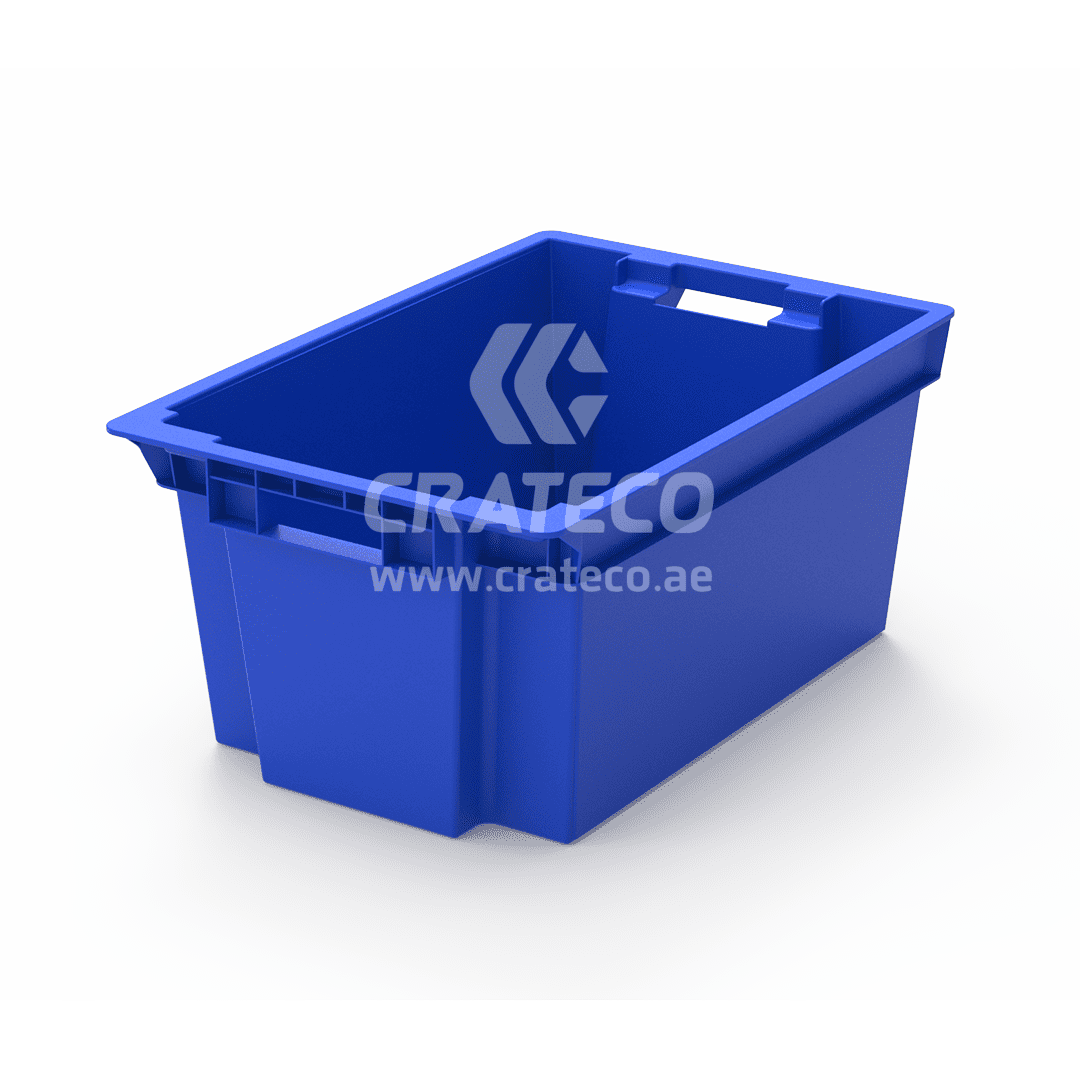 The closed nestable stackable crate with dimensions of 600 x 400 x 280 (LWH) MM is a practical and space-saving storage solution designed for efficiency and convenience. Its unique nestable design allows multiple crates to be stacked inside each other when not in use, reducing the required storage space significantly. Our closed nestable crate finds widespread applications in various industries, including food, agriculture, pharmaceuticals, logistics, and more.