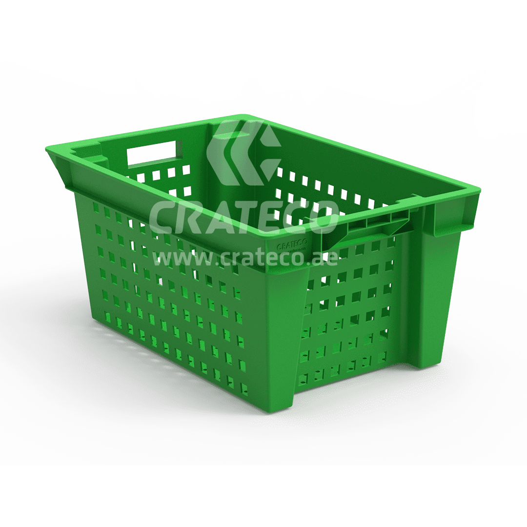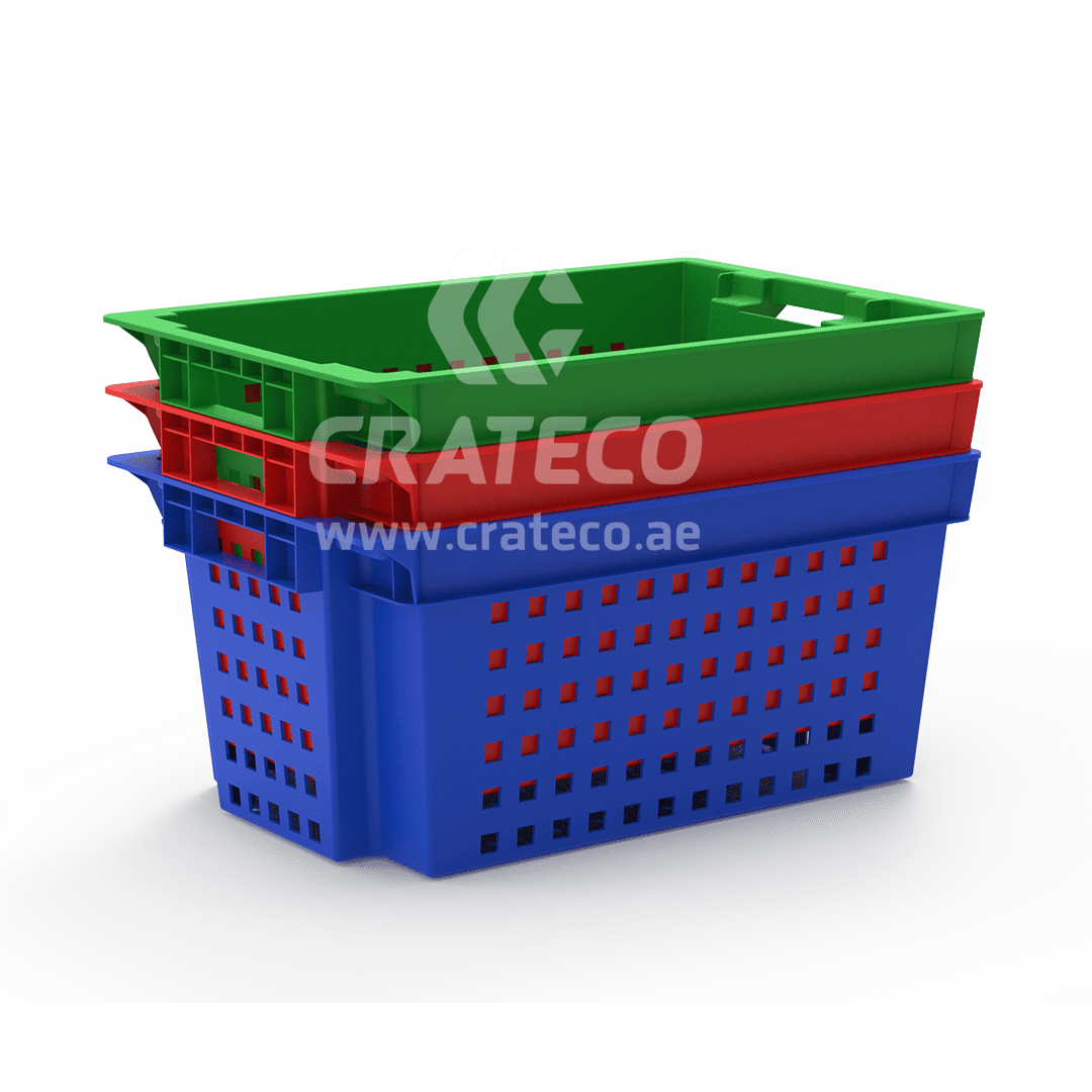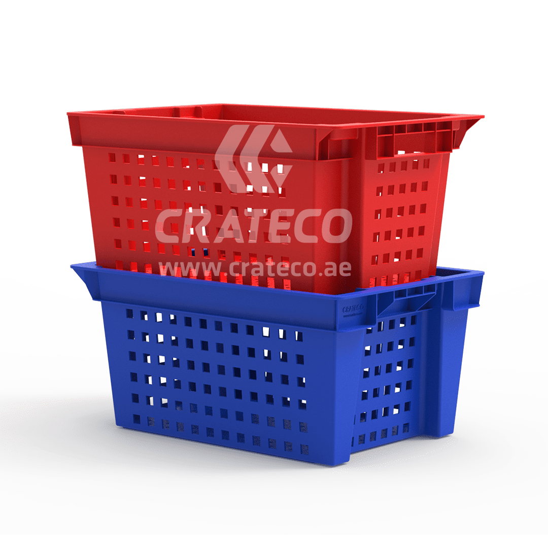 The Crateco Pack LLC ventilated nestable crates are utilized in the food processing industry for sorting, storing, and transporting products. Crateco Pack LLC stands as a top plastic crates suppliers in UAE, providing innovative plastic crates options for your business requirements.