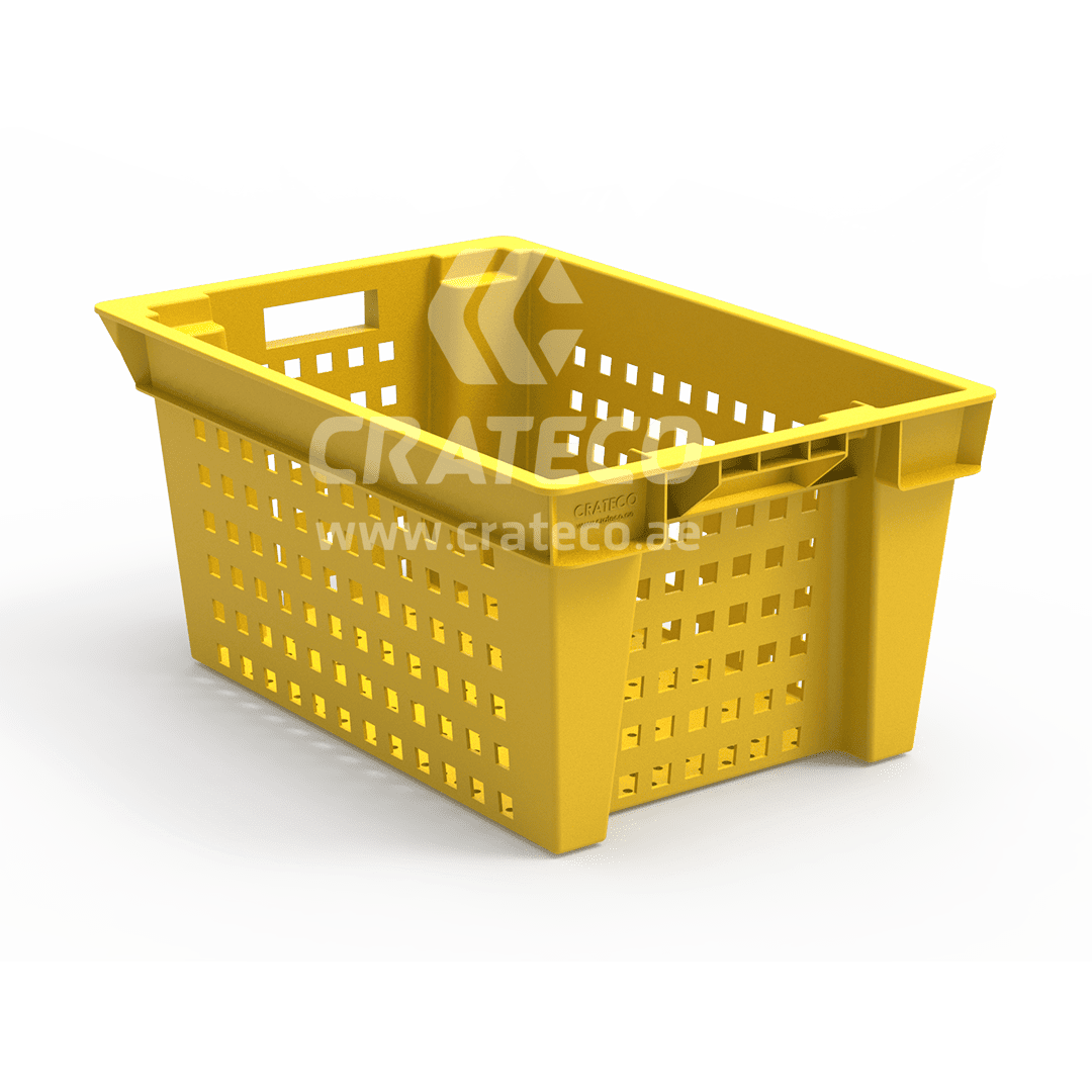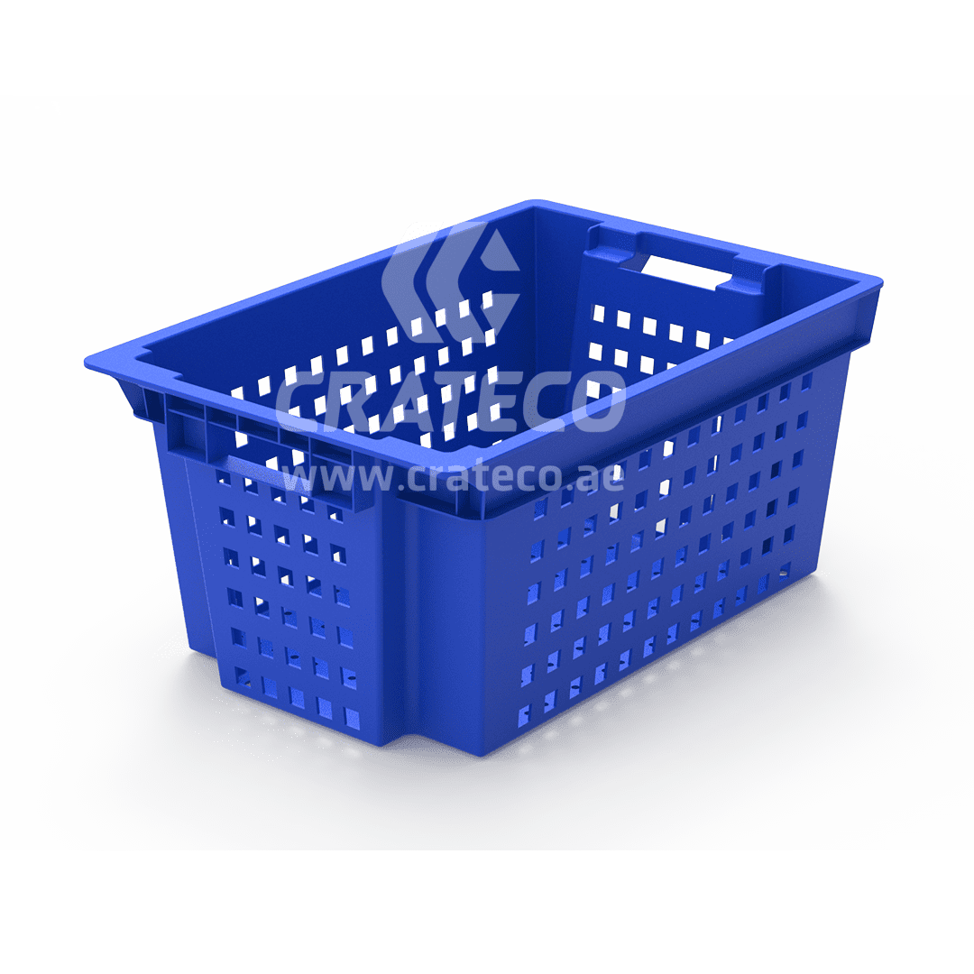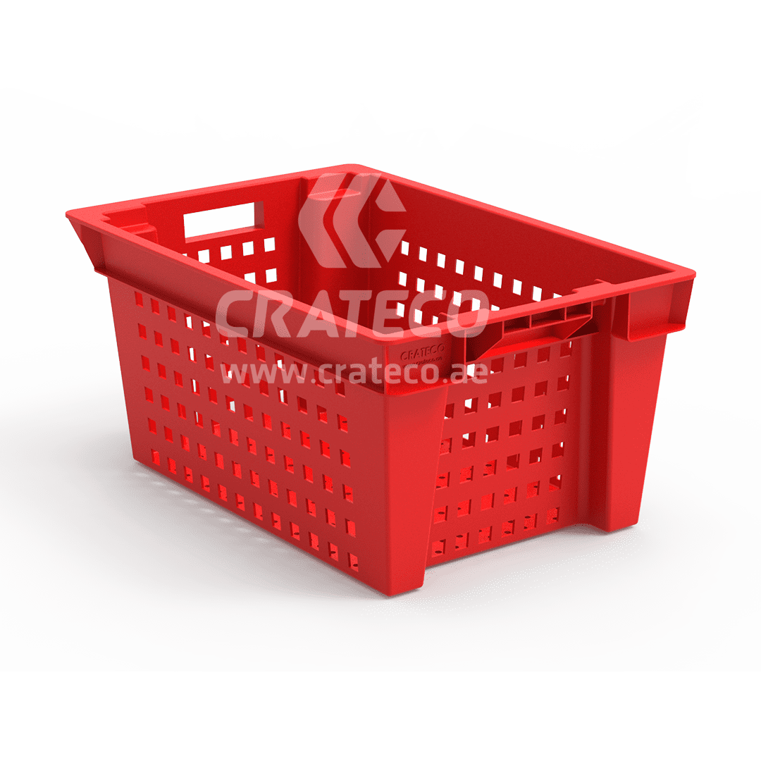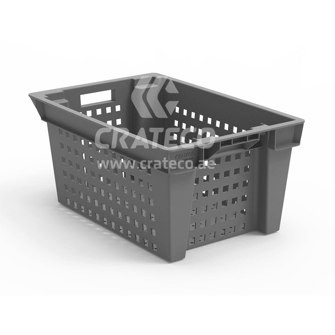 The Crateco Pack LLC ventilated nestable crates are utilized in the food processing industry for sorting, storing, and transporting products. Crateco Pack LLC stands as a top plastic crates suppliers in UAE, providing innovative plastic crates options for your business requirements.